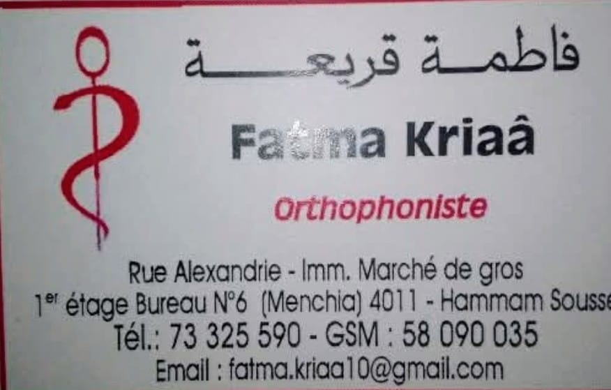Orthophoniste, SousseOrthophoniste à Hammam Sousse – Fatma KriaaOrthophoniste à Hammam Sousse – Fatma Kriaa