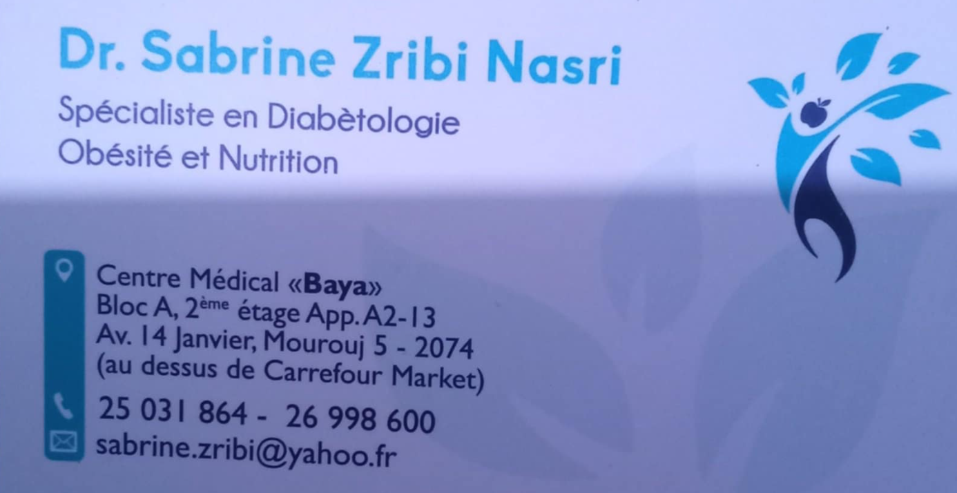 Ben Arous, Diabétologue et Nutrition, El MouroujDiabétologie et Nutrition El Mourouj 5 – Dr Sabrine Zribi NasriDiabétologie et Nutrition El Mourouj 5 – Dr Sabrine Zribi Nasri